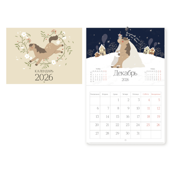 Календарь настен. перек. 2026г "Afanasiy" 30*22см, скоба N6047 Infolio