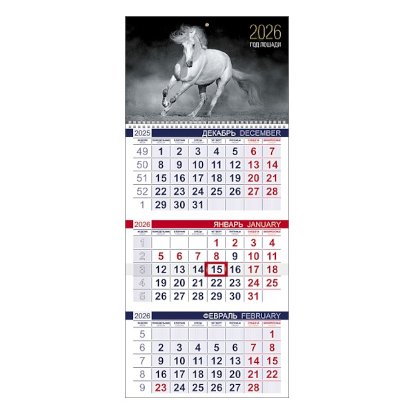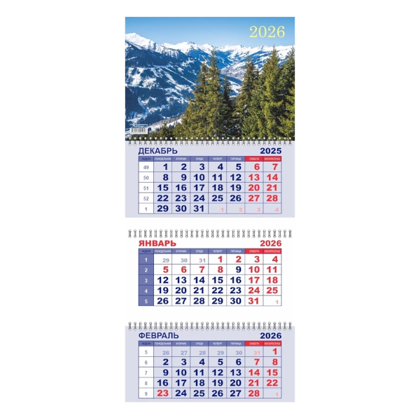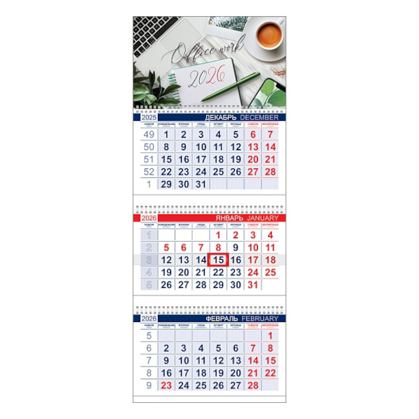 Доп. описание: Офисный календарь на 2026 год на 3 гребнях. Для удобства плани...