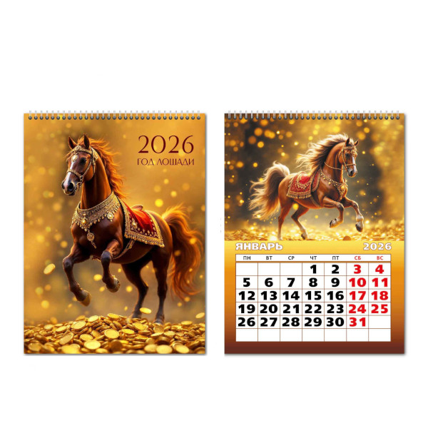Календарь-домик настол. перек. 2026г. "Символ года лошадь на золоте" 100*140мм 9536 Квадра