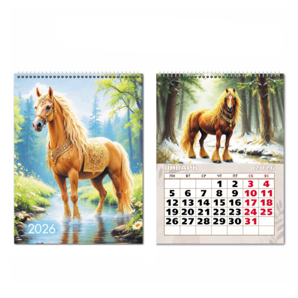 Календарь-домик настол. перек. 2026г. "Символ года. Лошадь золотистая" 100*140мм 9537 Квадра