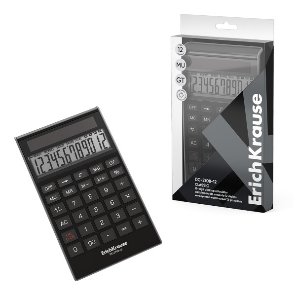 Калькулятор Erich Krause DC-2708-12 "Classic" (черный) настольный, 12р 62003