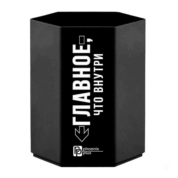 Подставка-стакан для пиш. прин. "Главное, что внутри" 8*8*10,8см, кругл., пласт., черн 69639 Феникс+