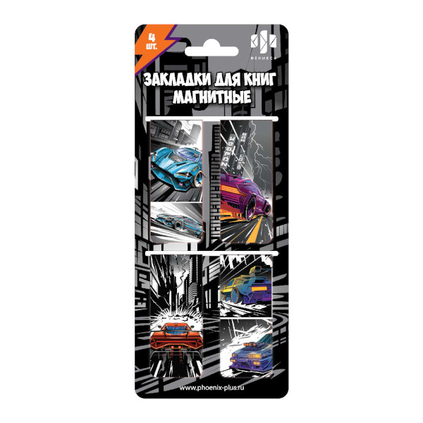Набор закладок для книг магнит. "Гонки" 25*58мм, 4шт 67750 Феникс+