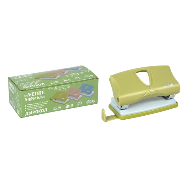 Дырокол 10л deVENTE "sigNATURE" с линейкой, оливковый 4020511