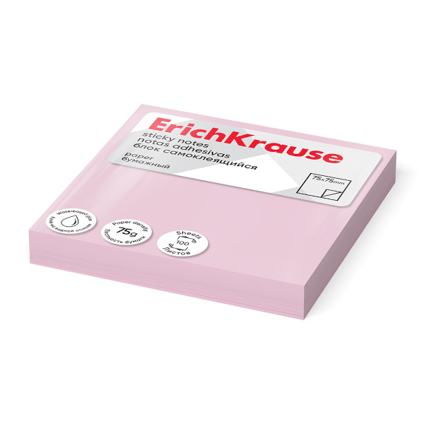 Липкий блок Erich Krause 75*75мм, 100л, розовый 61648