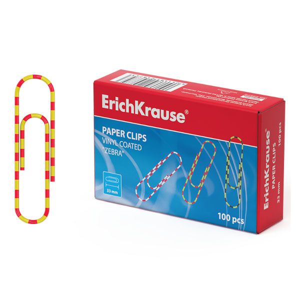 Скрепки 33мм Erich Krause "Зебра" овальные, цветные, в карт.уп. (100шт) ЕК24874