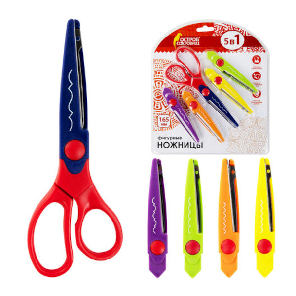 Ножницы фигурные 16,5см Остров сокровищ асимметр., пластик, 5 смен.лезвий 236782