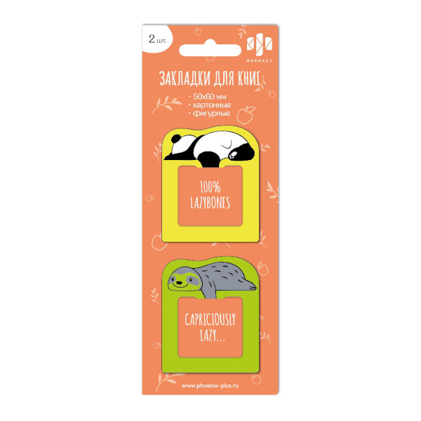 Набор закладок для книг фигурных "Панда и ленивец" 50*60мм, 2шт, картон 65139 Феникс+