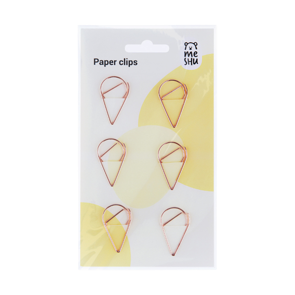 Скрепки фигурные MESHU "Drops" 33мм, роз.золото, 6шт MS_41591