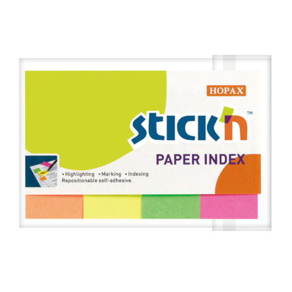 Набор самокл. закладок Stick`n 20*50мм бумажные (4 неон цв. по 50л) 21205