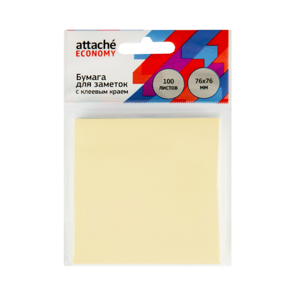 Липкий блок Attache "Economy" 76*76мм 100л пастель желтый 1407985