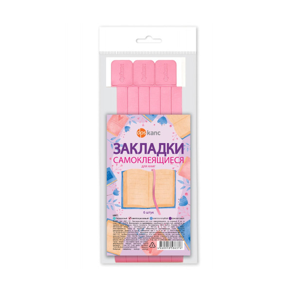 Закладка для книг самоклеящаяся, ПВХ, светло-розовая, 6шт 2921-121 ДПС
