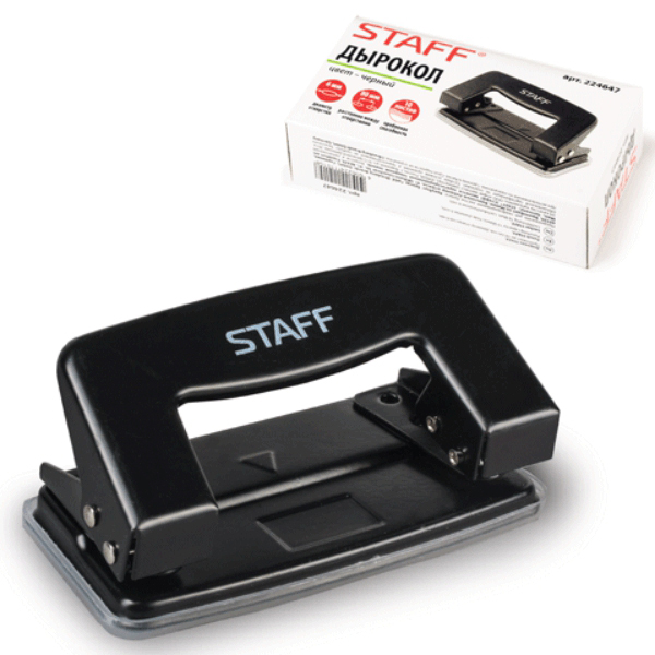 Дырокол 10л Staff "Эконом", черный 224647