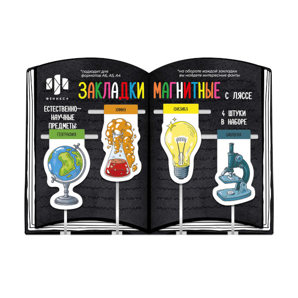 Набор закладок-ляссе для книг магнит. "ЕСТЕСТВЕННО-НАУЧНЫЕ ПРЕДМЕТЫ" 4шт 57360 Феникс+