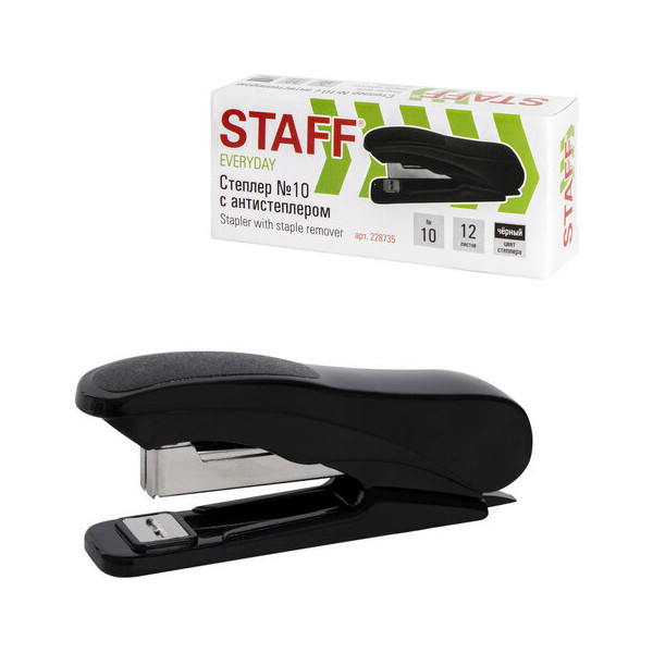 Степлер №10, 12л, пластик, антистеплер, черный "Everyday" 228735 Staff