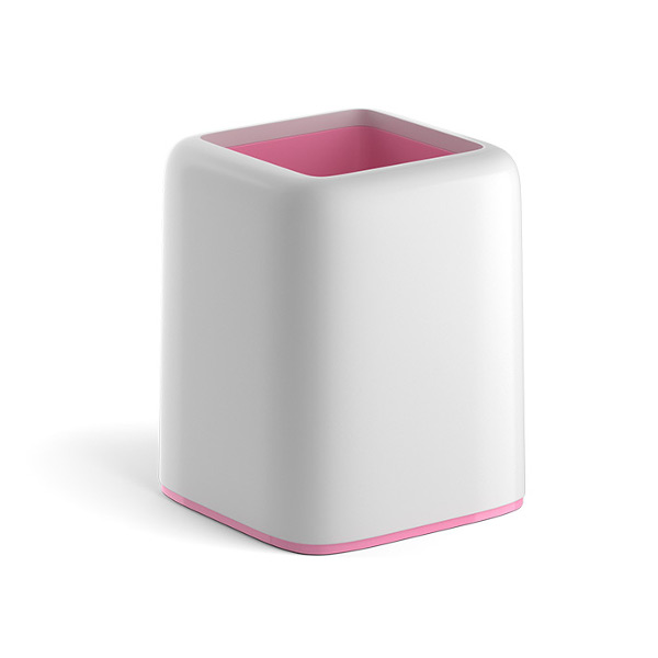 Подставка-стакан для пиш. прин. "Forte. Pastel" 8,5*8,5*10,4см, квадрат., пласт, белый/роз 53253 EK