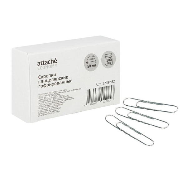 Скрепки 50мм Attache овальные, оцинкованные, гофрированные, в карт.уп. (100шт) 1239382