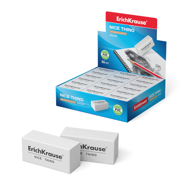 Ластик Erich Krause "Nice Thing" прямоуг. 40*19*15мм, термопласт. резина, белый 45027