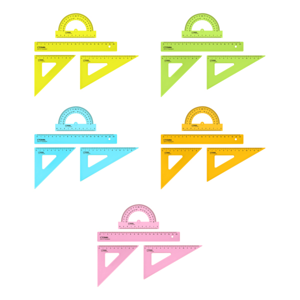 Геометрический набор 4предм.(линейка 20см, угольники 45° и 60°, транспортир) ассорти НЧ-30521 СТАММ