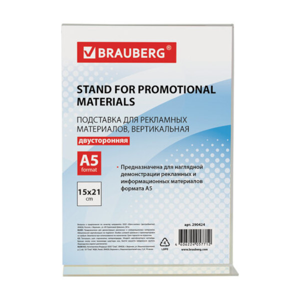 Держатель для инф. настол. прозрачный, вертикал. двусторон. 150*210мм 290424 Brauberg