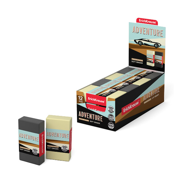 Ластик Erich Krause "Adventure" прямоуг. 55*30*13мм, термопласт. резина, ассорти 48175