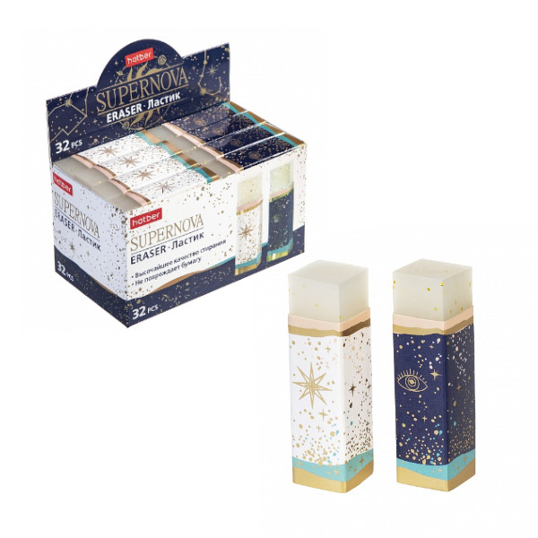 Ластик Hatber "SuperNova" прямоуг. 60*10*10мм, PVC, ассорти ER_073227