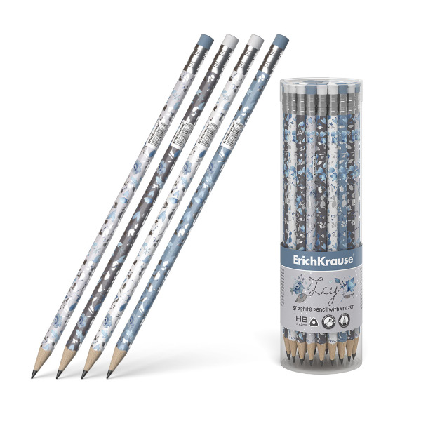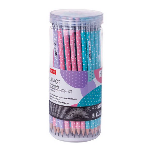 Карандаш ч/гр HB, дерево, круглый, ластик, ассорти "Grace" BL_061956 Hatber