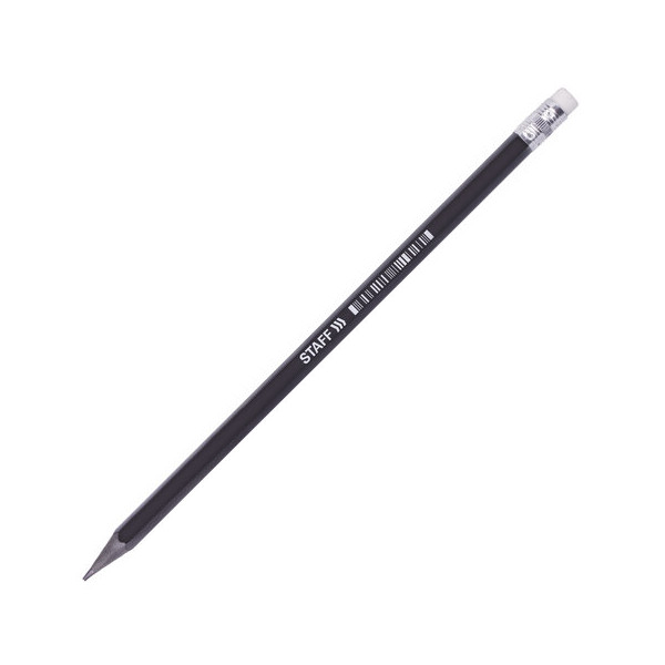 Карандаш ч/гр HB, пластик, 6-гран. ластик, черный "College BLP-712" 181712 Staff