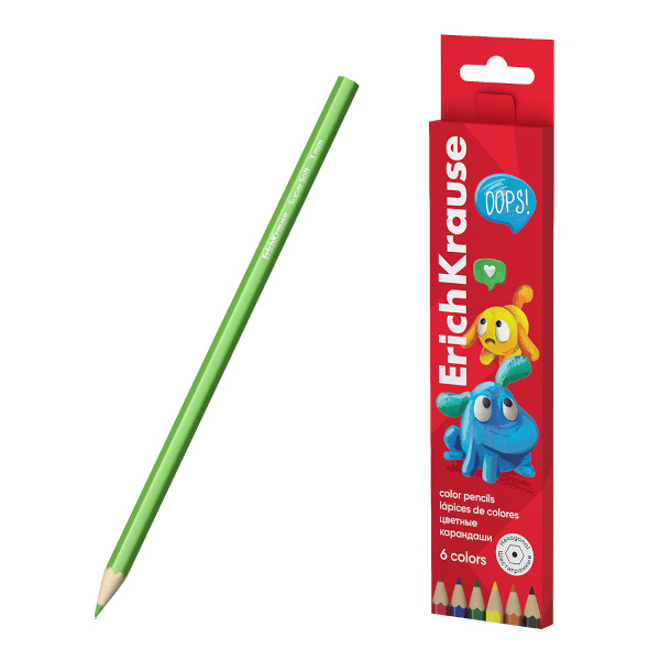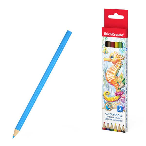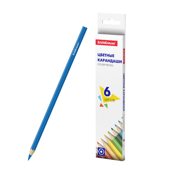 Карандаши 6цв, дерево, 6-гран., карт.уп. 49881 Erich Krause
