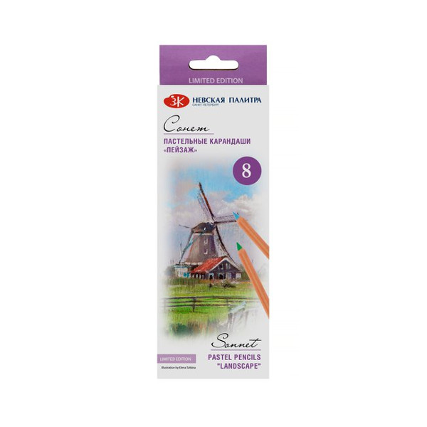 Карандаши 8цв, дерево, круглые "Сонет. Пастель. Пейзаж" карт.уп. 132411520 Невская палитра