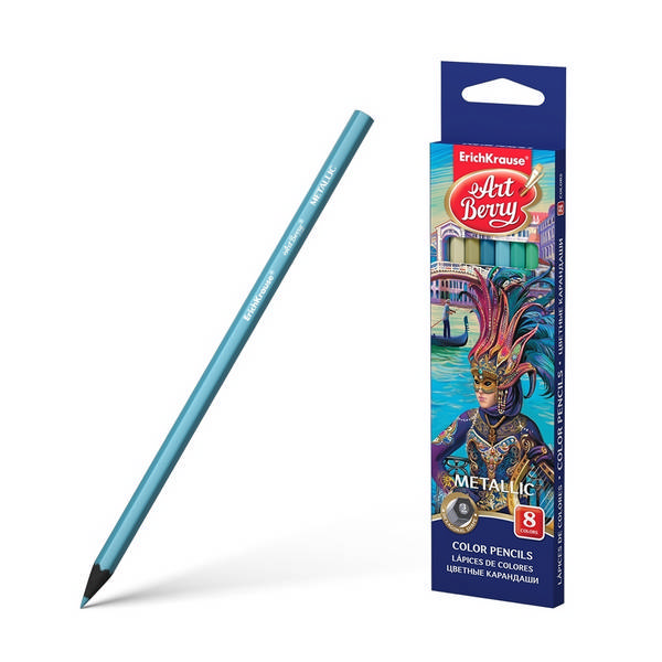 Карандаши 8цв, дерево, 6-гран. "Metallic" карт.уп. 39425 Erich Krause/ArtBerry