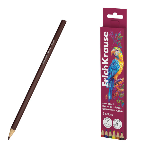 Карандаши 6цв, дерево, 3-гран. "Safari" карт.уп. 61813 Erich Krause