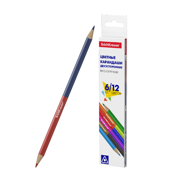 Карандаши двустор. 12цв/6шт, дерево, 3-гран. "Bicolor" карт.уп. 50530 Erich Krause