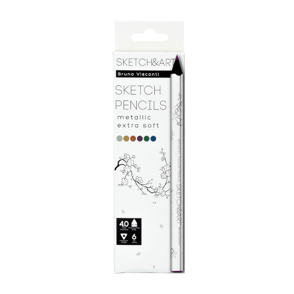 Карандаши 6цв, дерево, 3-гран. "Sketch&Art. Металлик" утолщ., карт.уп. 30-0118/01 Bruno Visconti