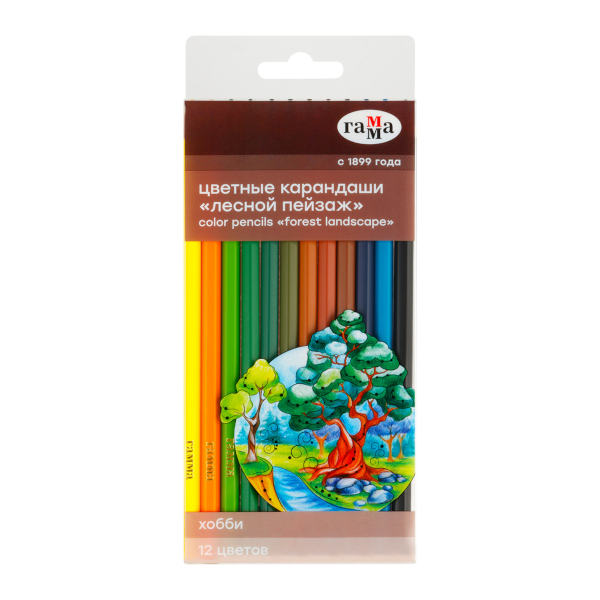 Карандаши 12цв, дерево, 6-гран. "Хобби. Лесной пейзаж" ПВХ-уп. 280620214 Гамма