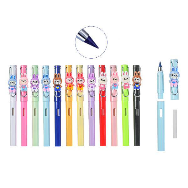 Карандаши вечные 12цв, пластик, круглые "Зубастик" ластик, ПВХ-уп. M-7118 MAZARI ТМ
