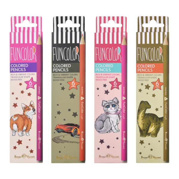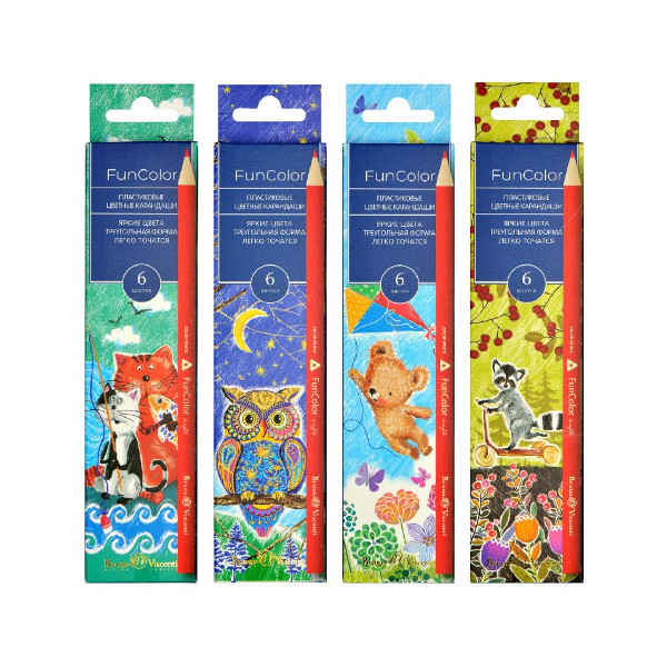 Карандаши 6цв, пластик, 3-гран. "FunColor" ассорти, карт.уп. 30-0065 Bruno Visconti
