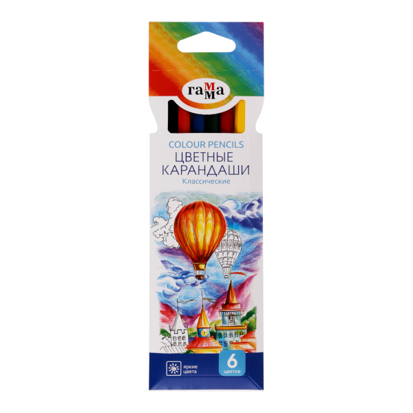 Карандаши 6цв, дерево, 6-гран. "Классические" карт.уп. 050918_01_01 Гамма