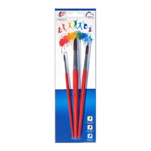 Набор кистей 3шт пони (№ 2,5,8) круглые "Классика" 3С 2177-08 Луч