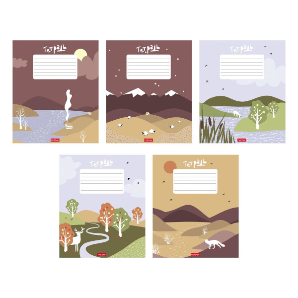 Тетрадь 24л А5 клетка "Наивные пейзажи" картон, ассорти 24Т5В1 Hatber