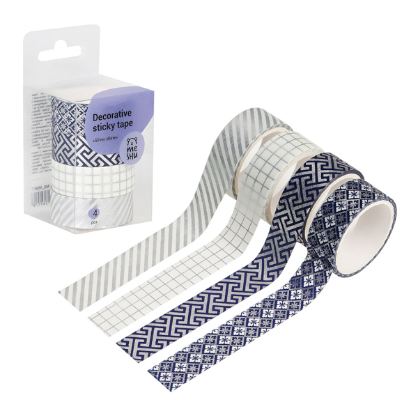 Набор клейких лент 15мм*3м "Silver shinet" 4шт MS_36917 MESHU