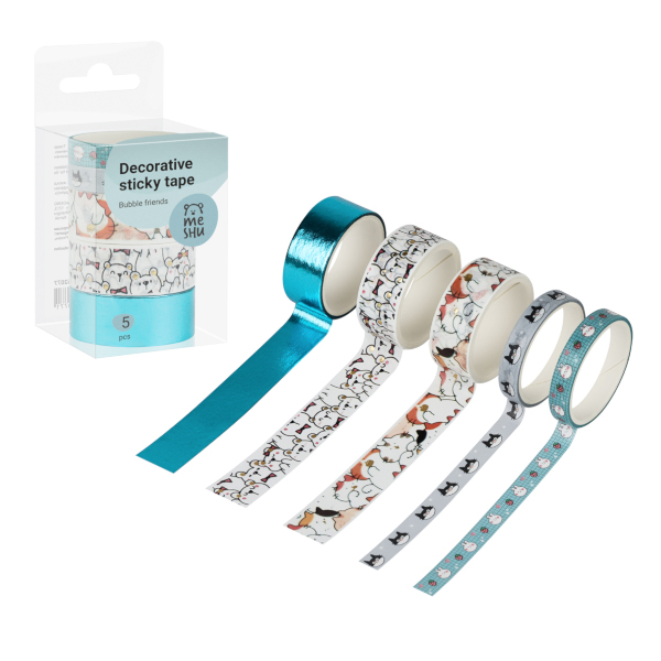 Набор клейких лент 15/7мм*3м "Bubble friends" ассорти (уп*5шт) MS_52077 MESHU
