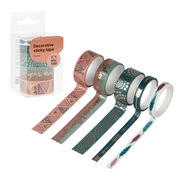 Набор клейких лент 15/7мм*3м "Feather" ассорти (уп*5шт) MS_52079 MESHU