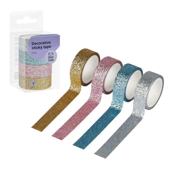 Набор клейких лент 15мм*3м "Glitter" ассорти (уп*4шт) MS_52073 MESHU