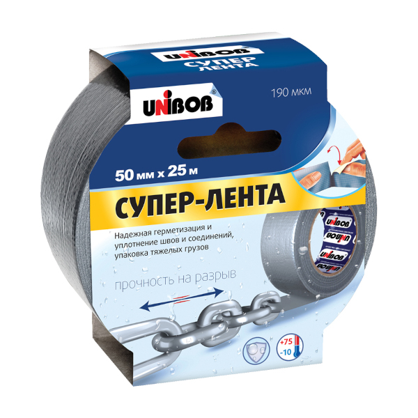 Клейкая лента (скотч) армированная 50мм* 25м, 190мкм, серая, полипропилен 44265 Unibob