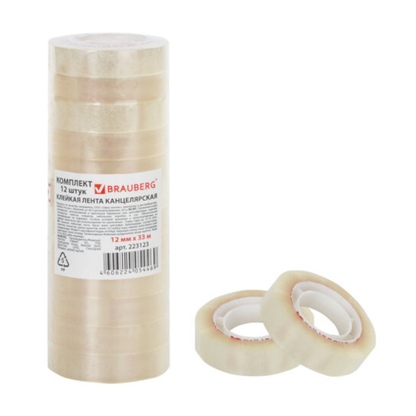 Клейкая лента (скотч) 12мм*33м, 35мкм, прозрачная 223123 (1шт) Brauberg