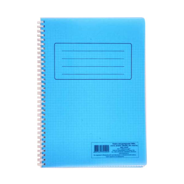 Книга канцелярская 100л А4 клетка, синяя, обл. пластик, спираль СБИ