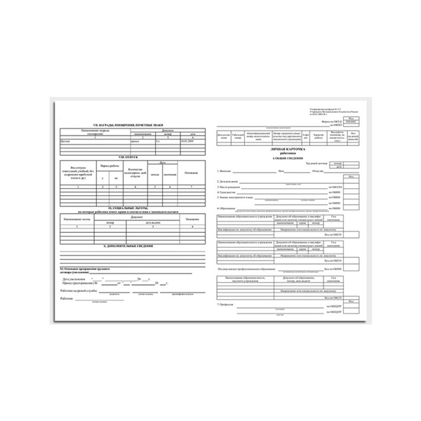 Бланк А3 "Карточка личная" 2-х сторон. (50л) (Форма - Т2) B-KL3-21-1_508 OfficeSpace (1уп*50листов)