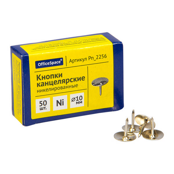 Кнопки канцелярские 10мм никелированные, в карт.уп. (50шт) Pn__2256 OfficeSpace