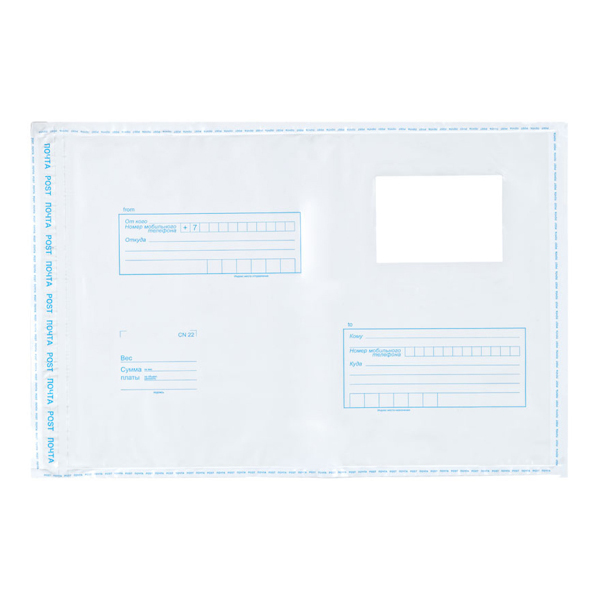 Пакет почтовый Е4 280*380мм "Куда-Кому" без окна, стрип, полиэтилен 60мкм 11005 Курт